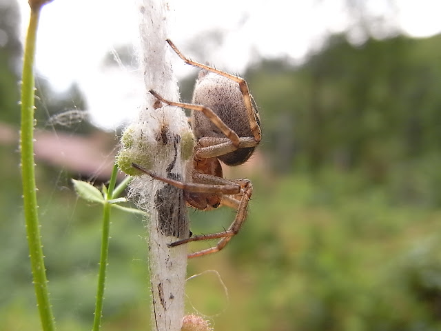 on fait des rencontres et on passe autour si on peut... ou alors on déplace... comme cette agelène qui avait installé une grosse propriété en hauteur dans une touffe de seigle... si elle habite à la base je coupe simplement plus haut et cela ne dérange pas de la laisser à demeure..