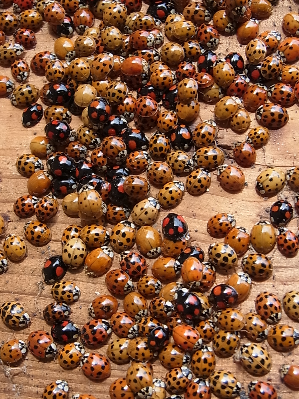 mais après un début de mois froid et pluvieux, le redoux dès mercredi il y a deux jours, a vu les coccinelles asiatiques arriver en vol en grand nombre, pour se poser sur les murs de la maison et gagner l'arrière du volet où elles hivernent depuis quelques années...